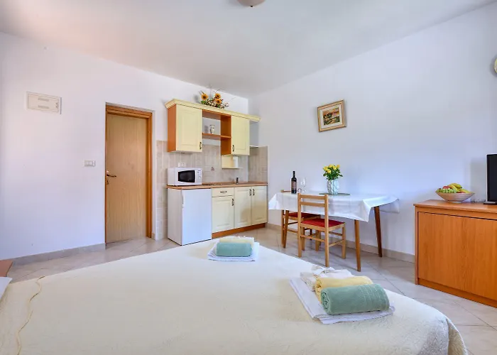 この28m²のアパートはロヴィニ旧市街から2.1キロメートルの距離の場所にあります。 Studio Romano With Terraceは聖エウフェミヤ聖堂から徒歩で約30分の場所にあります。